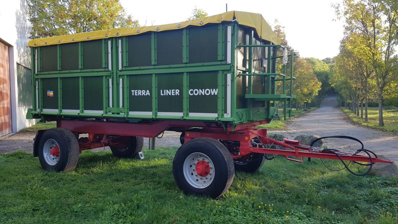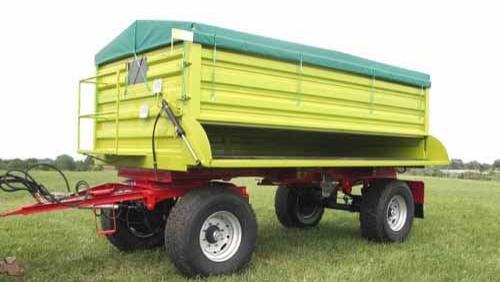 - mogelijke hoogtes van de onderste neerlaatkant: 400 of 500 mm, De hydraulische neerlaatkantopening bestaat uit twee hydraulische cilinders, met aangelaste bouten en 1 set hydraulische slangen. De onderste valzijwand is aan beide uiteinden uitgerust met een zijgeleidingssegment als begrenzing voor een gedwongen geleiding van de lading bij het kantelen naar een opvangbak. Dit ontwerp is bijzonder geschikt voor het kiepen van wortelgewassen en graan in opvangbakken.