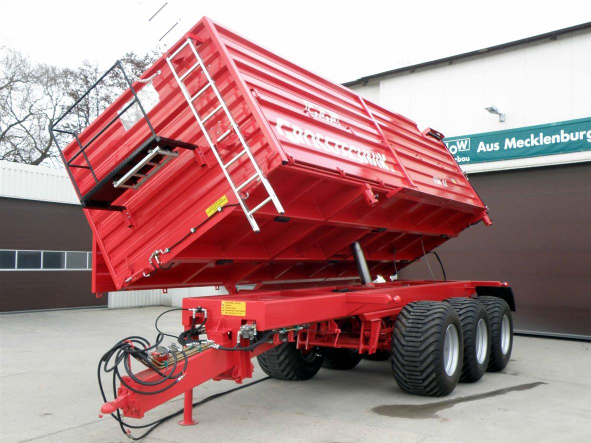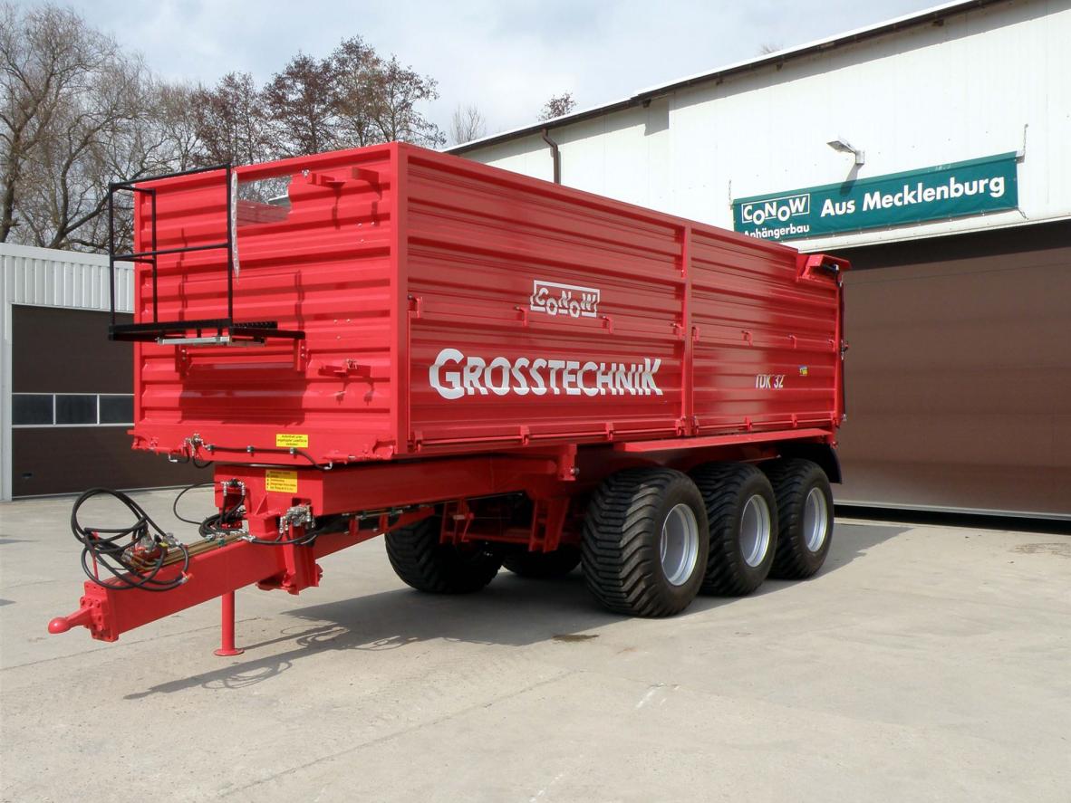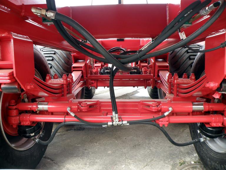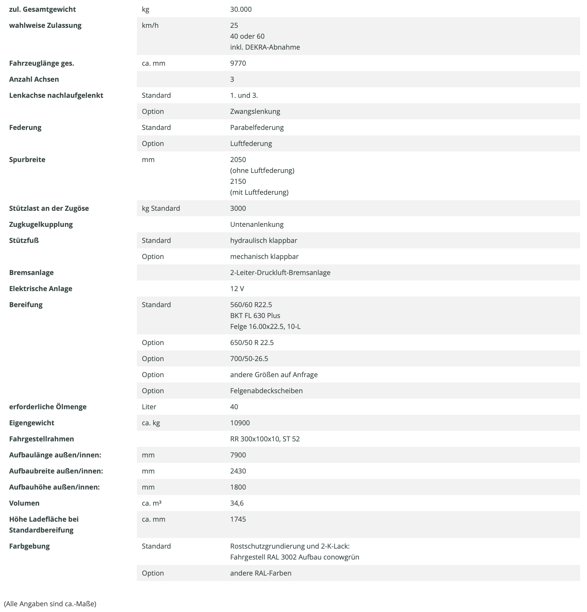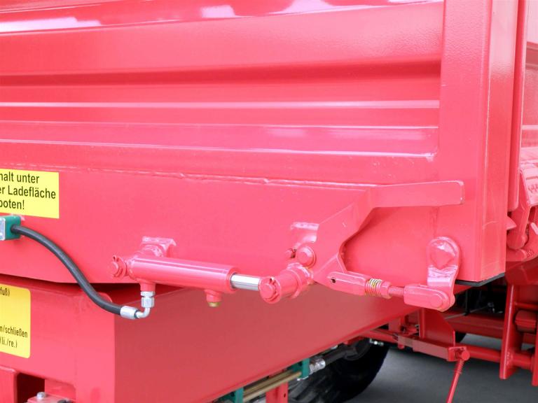 - Achterwand kan hydraulisch worden geopend over het gehele oppervlak (principe V 9) (achterste graanafvoerschuif mogelijk tegen meerprijs)Kleur carrosserie: roestwerende grondverf en 2-componentenlak conowgrün